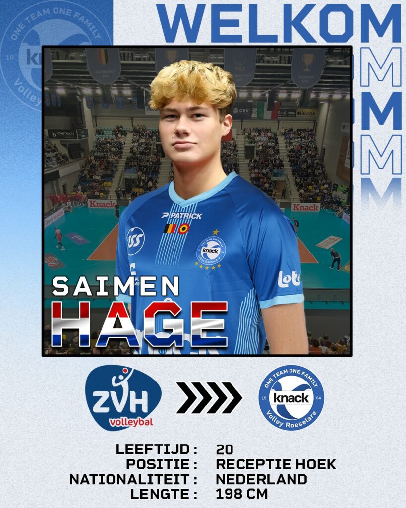 Saimen Hage (Scherp in Packaging ZVH) wordt aangekondigd als nieuwe ‘receptie hoek’ (Vlaams voor passer-loper) van Knack Roeselare. Bron: Knack Roeselare