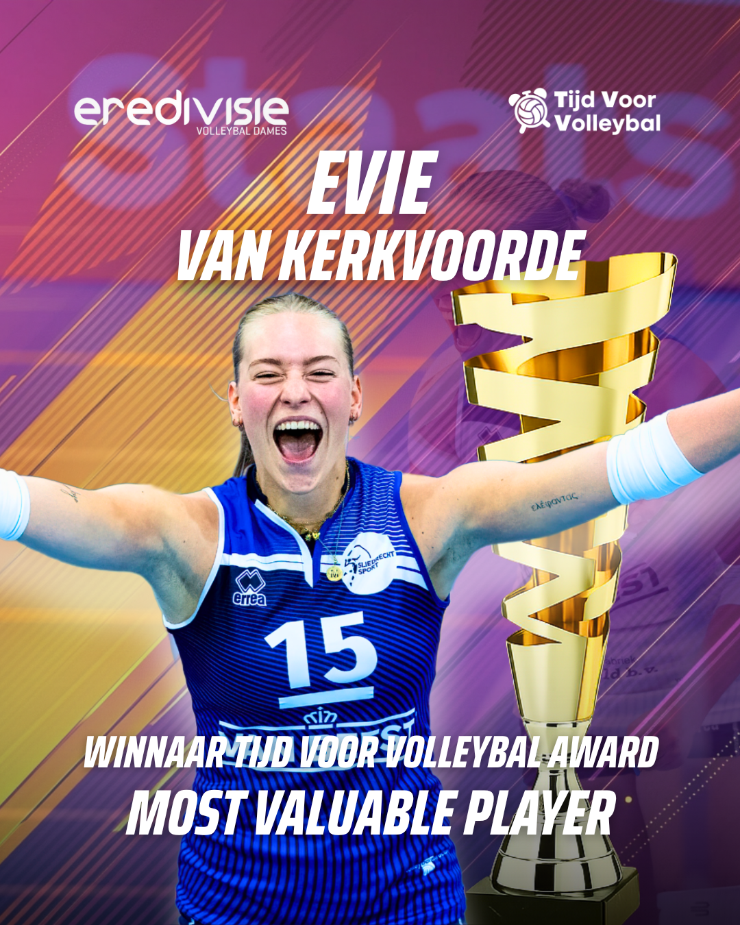 Evie van Kerkvoorde is verkozen tot Most Valuable Player van de Eredivisie Dames 2024–2025. De 24-jarige passer-loper van Sliedrecht Sport ontving 33% van de stemmen van de hoofdcoaches.