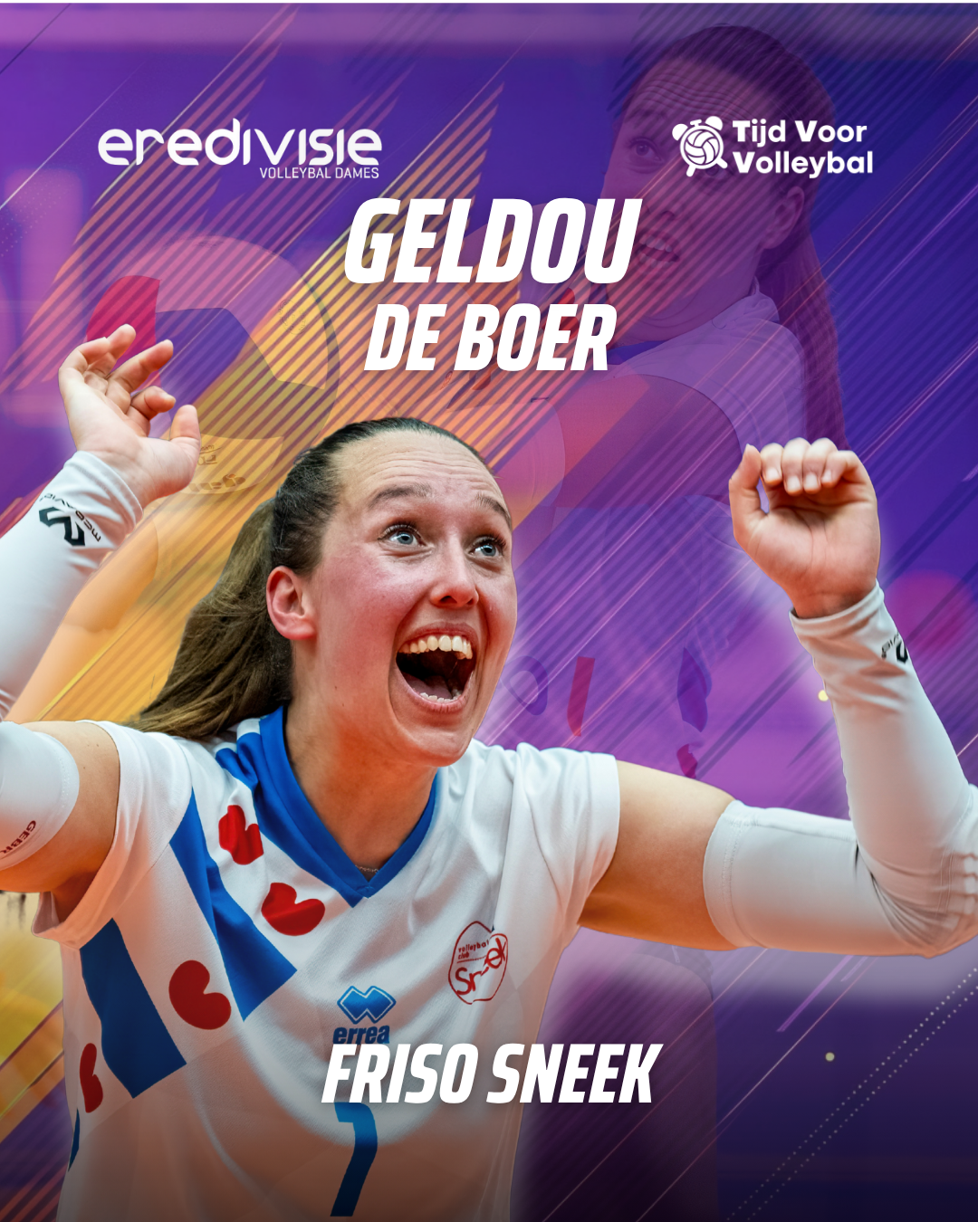Geldou de Boer is als libero van Friso Sneek niet meer weg te denken uit het team. Haar stabiele passing vormt de basis voor het succes in de strijd om het landskampioenschap.